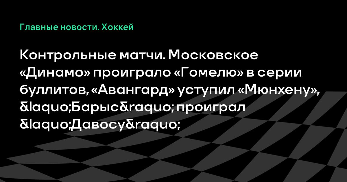 Контрольные матчи. Московское «Динамо» проиграло «Гомелю» в серии буллитов, «Авангард» уступил «Мюнхену», «Барыс» проиграл «Давосу»