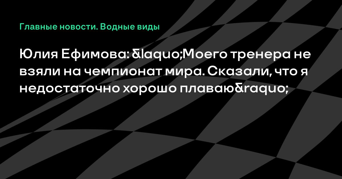 Юлия Ефимова: «Моего тренера не взяли на чемпионат мира. Сказали, что я недостаточно хорошо плаваю»
