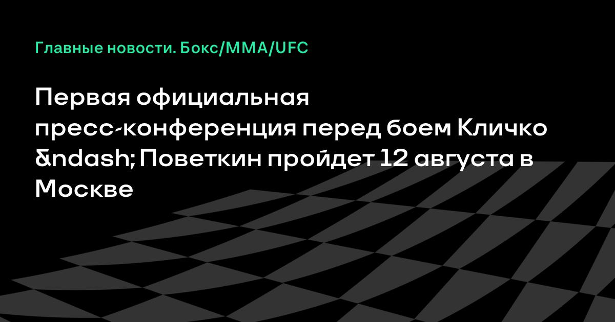 12 августа в Москве состоится первая официальная пресс-конференция перед боем между чемпионом мира в супертяжелом весе Владимиром Кличко и претендентом Александром Поветкиным.