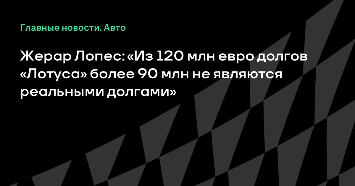 Напомним, что ранее сообщалось, что долги «Лотуса» в данный момент составляют 120 млн евро.