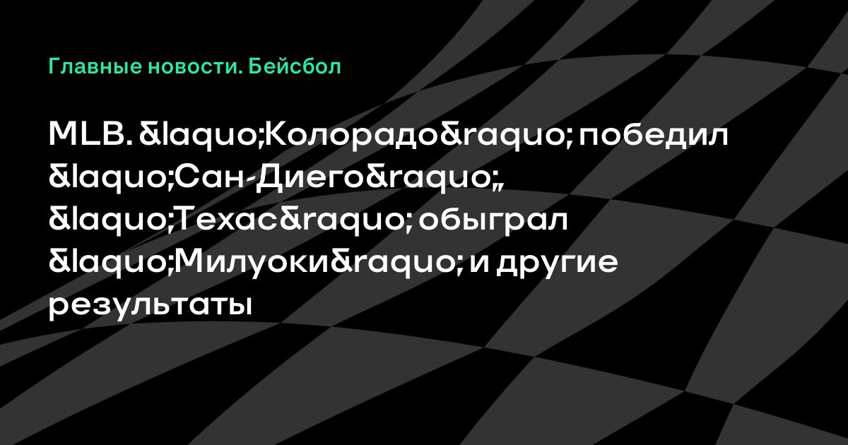 Сегодня прошли очередные матчи регулярного чемпионата Главной лиги бейсбола (MLB). «Колорадо» победил «Сан-Диего» (4:2), «Техас» обыграл «Милуоки» (5:4).