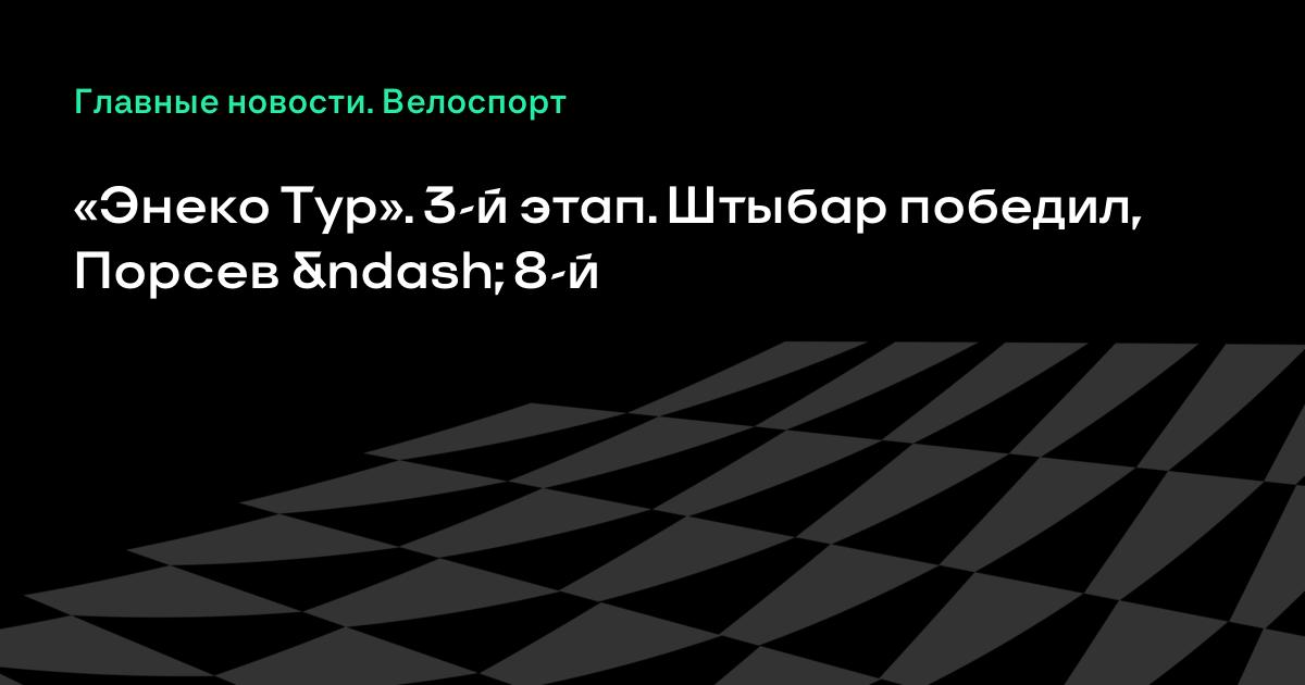 Сегодня завершился третий этап веломногодневки «Энеко Тур». Победу одержал чех Зденек Штыбар, россиянин Александр Порсев – 8-й.