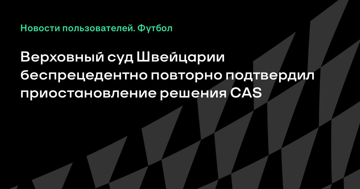 Верховный суд Швейцарии беспрецедентно повторно подтвердил приостановление решения CAS