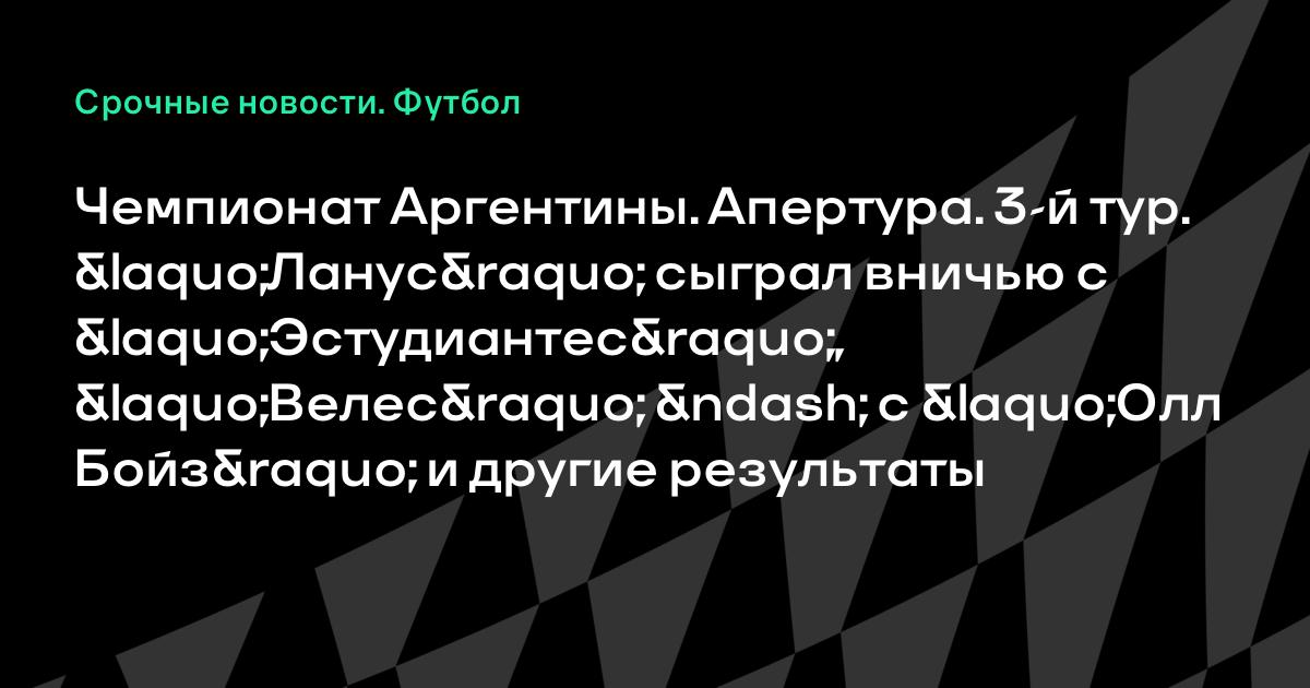 Чемпионат Аргентины. Апертура. 3-й тур. «Ланус» сыграл вничью с «Эстудиантес», «Велес» – с «Олл Бойз» и другие результаты