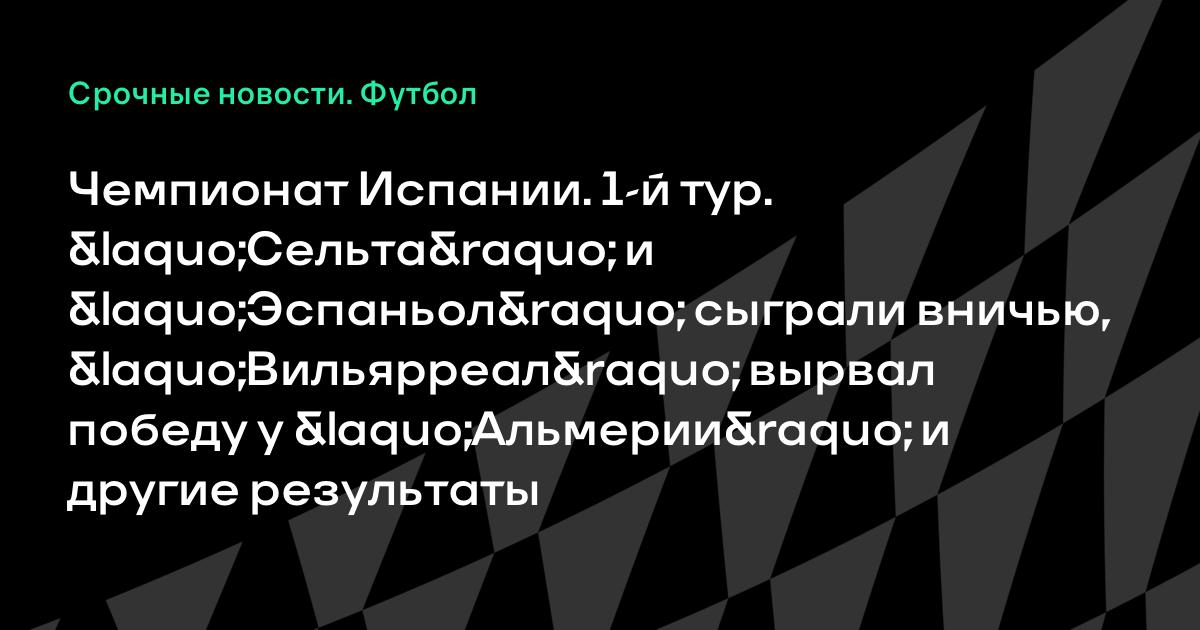 Чемпионат Испании. 1-й тур. «Сельта» и «Эспаньол» сыграли вничью, «Вильярреал» вырвал победу у «Альмерии» и другие результаты