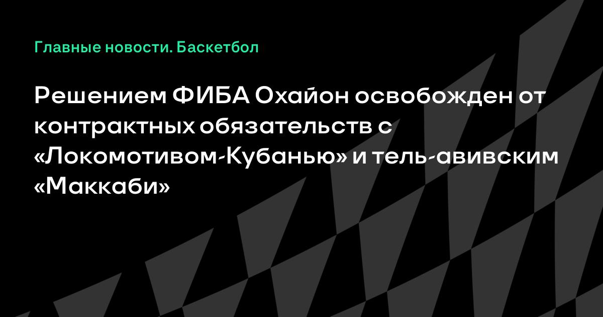 Как пишет издание, Охайон получил статус свободного агента и в ближайшее время планирует заключить 2-летнее соглашение с «Маккаби». Судьба компенсации, которую клуб из Тель-Авива получил от «Локомотива-Кубани» за переход баскетболиста, остается непонятной.