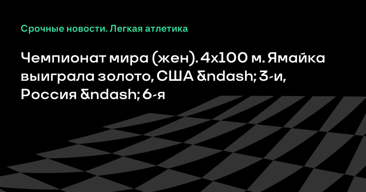 Женская сборная Ямайки выиграла золото в эстафете 4х100 м на чемпионате мира в Москве. Ямайские легкоатлетки победили с лучшим результатом чемпионатов мира. Сборная России заняла шестое место.