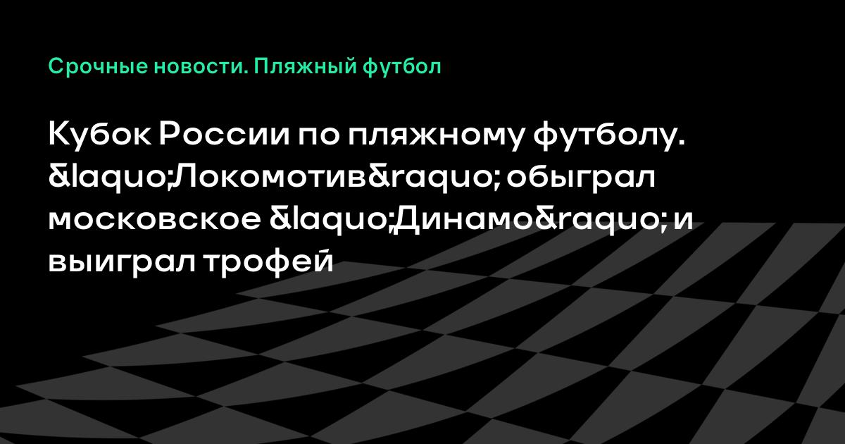 Московский «Локомотив» сегодня выиграл Кубок России по пляжному футболу, финальная часть которого завершилась в Санкт-Петербурге. В решающем матче «Локомотив» обыграл московское «Динамо» (3:2).