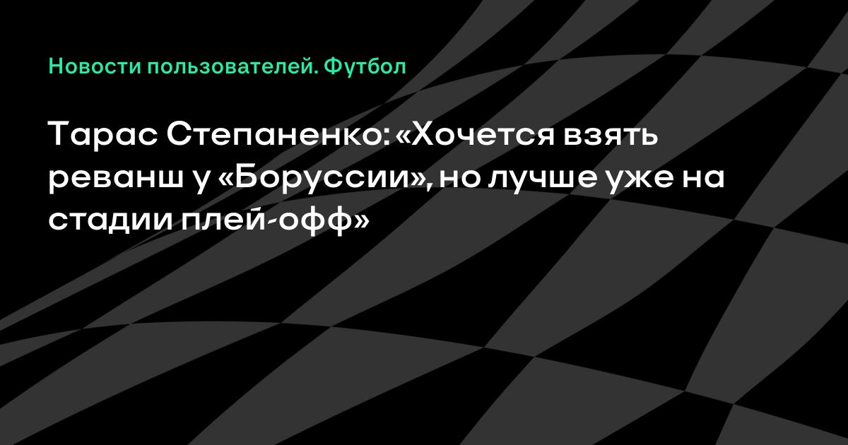 Тарас Степаненко: «Хочется взять реванш у «Боруссии», но лучше уже на стадии плей-офф»