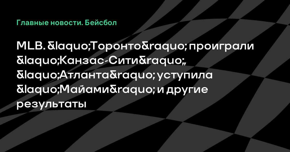 MLB. «Торонто» проиграли «Канзас-Сити», «Атланта» уступила «Майами» и другие результаты