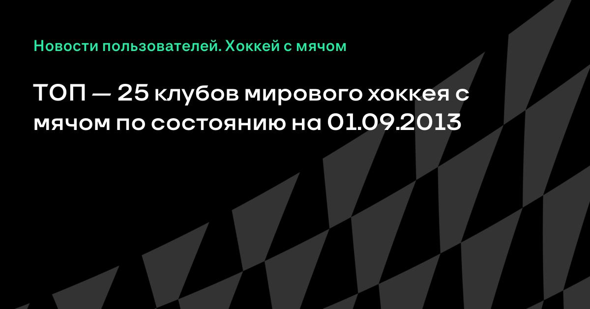 ТОП — 25 клубов мирового хоккея с мячом по состоянию на 01.09.2013