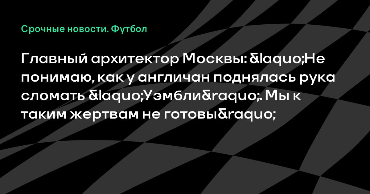 Главный архитектор Москвы: «Не понимаю, как у англичан поднялась рука сломать «Уэмбли». Мы к таким жертвам не готовы»