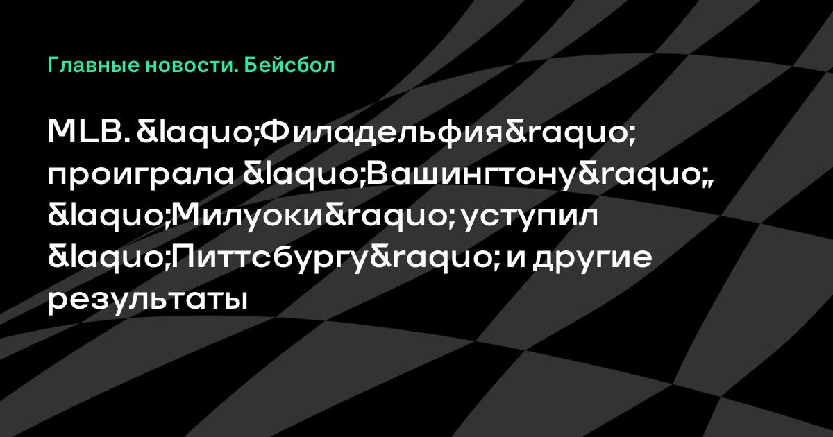 MLB. «Филадельфия» проиграла «Вашингтону», «Милуоки» уступил «Питтсбургу» и другие результаты