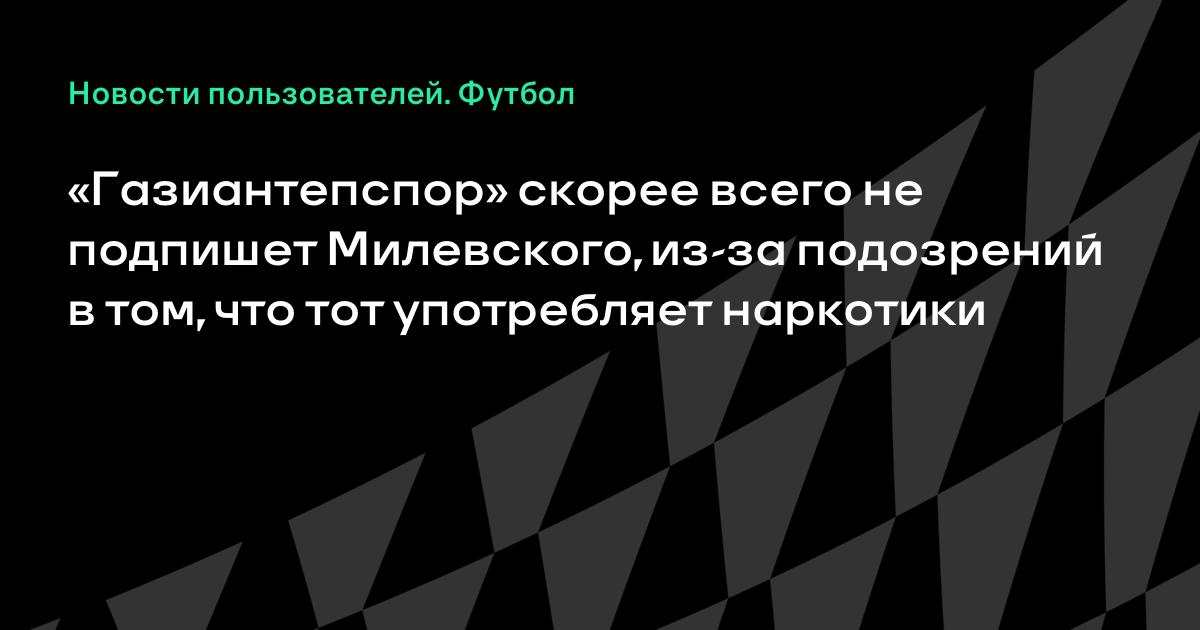 «Газиантепспор» скорее всего не подпишет Милевского, из-за подозрений в том, что тот употребляет наркотики