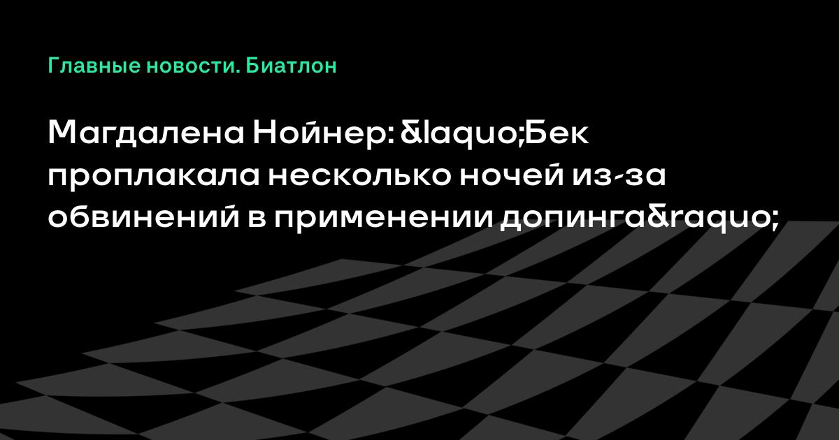 Магдалена Нойнер: «Бек проплакала несколько ночей из-за обвинений в применении допинга»