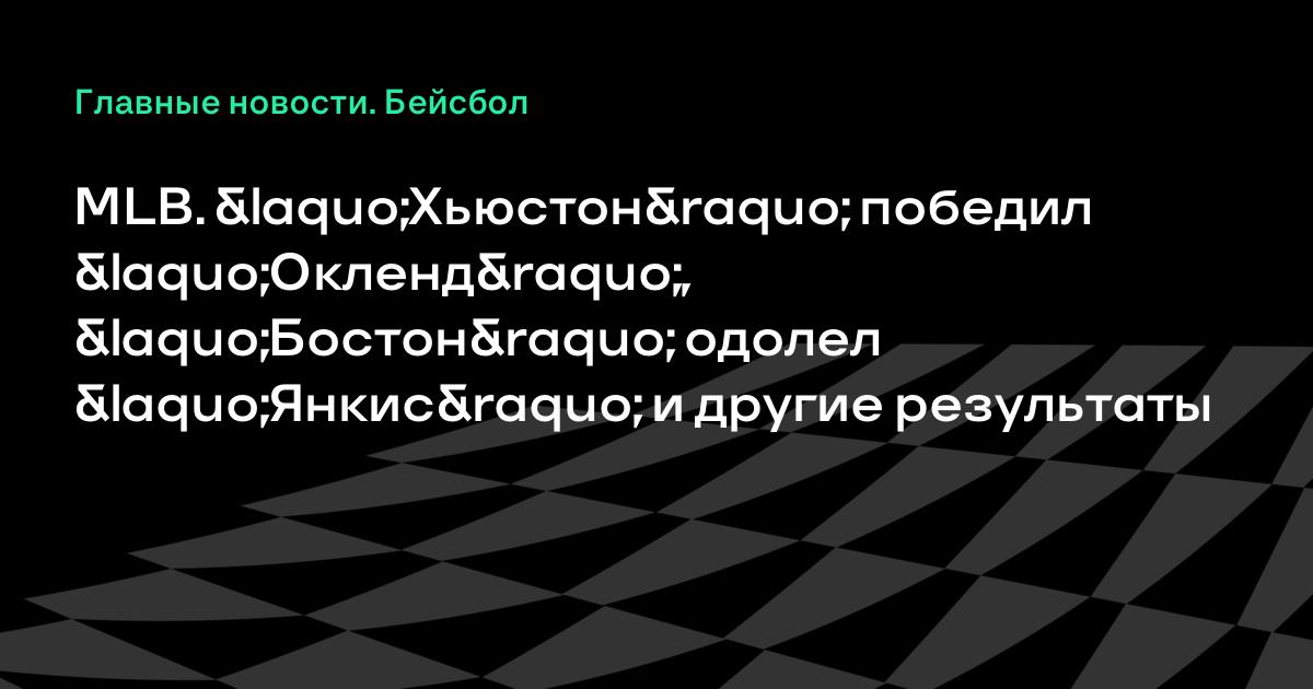 MLB. «Хьюстон» победил «Окленд», «Бостон» одолел «Янкис» и другие результаты