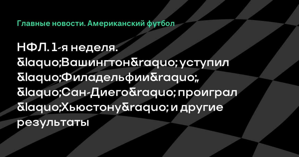 НФЛ. 1-я неделя. «Вашингтон» уступил «Филадельфии», «Сан-Диего» проиграл «Хьюстону» и другие результаты