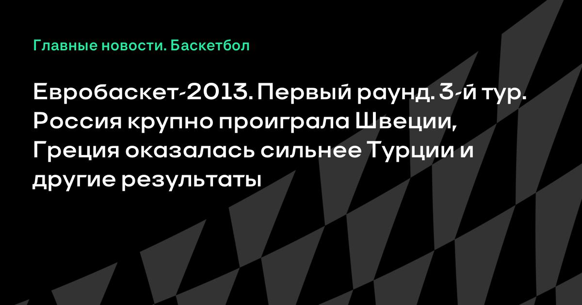 Евробаскет-2013. Первый раунд. 3-й тур. Россия крупно проиграла Швеции, Греция оказалась сильнее Турции и другие результаты