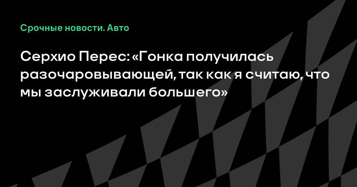 Серхио Перес: «Гонка получилась разочаровывающей, так как я считаю, что мы заслуживали большего»