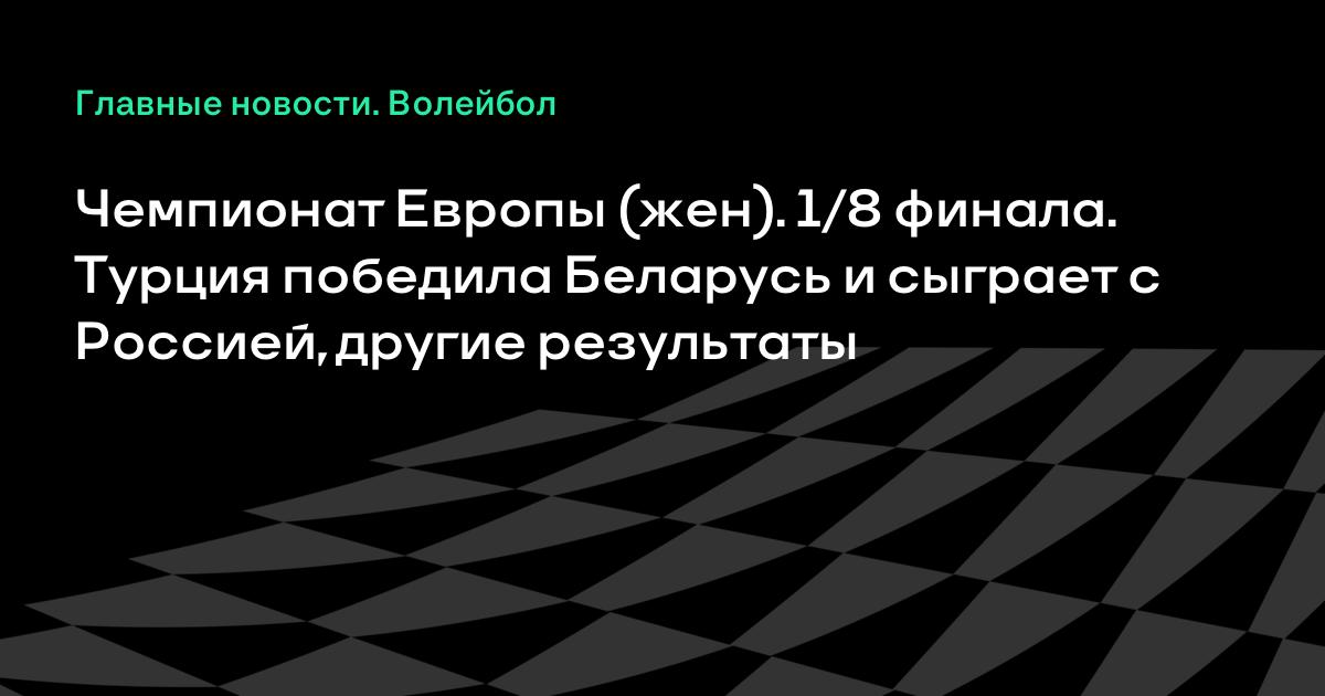 Сегодня в Германии и Швейцарии проходят матчи 1/8 финала женского чемпионата Европы по волейболу. Соперник сборной России по 1/4 финала определился во встрече между Турцией и Беларусью (3-0).