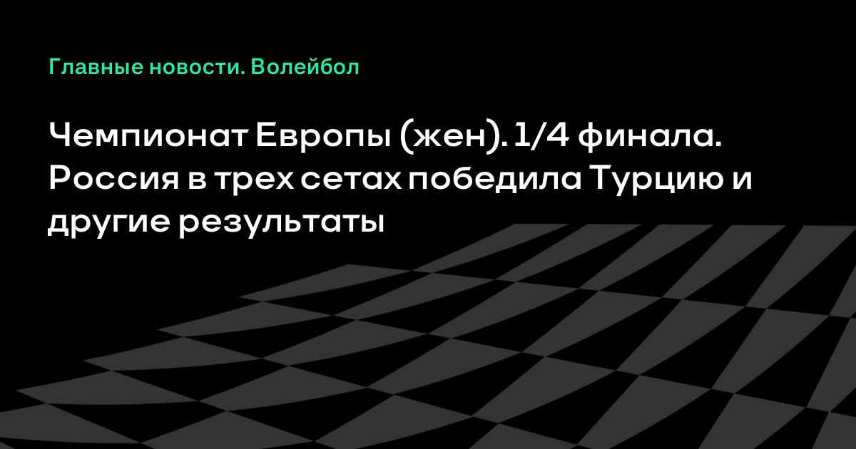 Сегодня на женском чемпионате Европы по волейболу, который проходит в Германии и Швейцарии, прошли матчи 1/4 финала. Сборная России в трех сетах победила Турцию (3-0). По ходу встречи россиянки проигрывали во второй (20:22) и третьей (4:10) партиях.