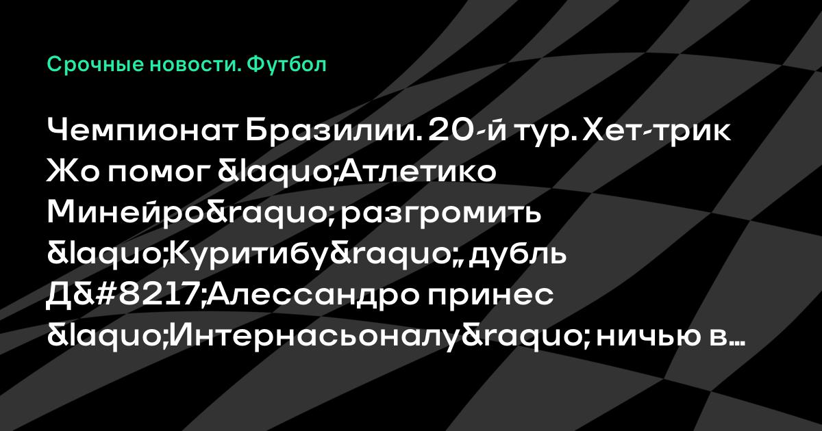 Чемпионат Бразилии. 20-й тур. Хет-трик Жо помог «Атлетико Минейро» разгромить «Куритибу», дубль Д’Алессандро принес «Интернасьоналу» ничью в игре с «Виторией» и другие результаты