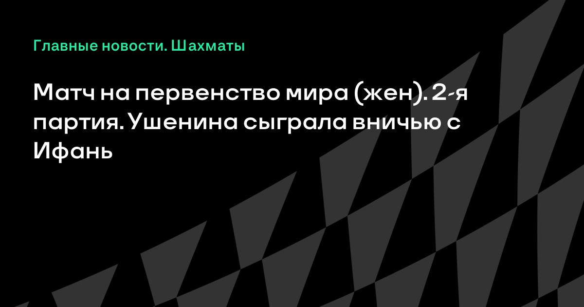 Матч на первенство мира (жен). 2-я партия. Ушенина сыграла вничью с Ифань
