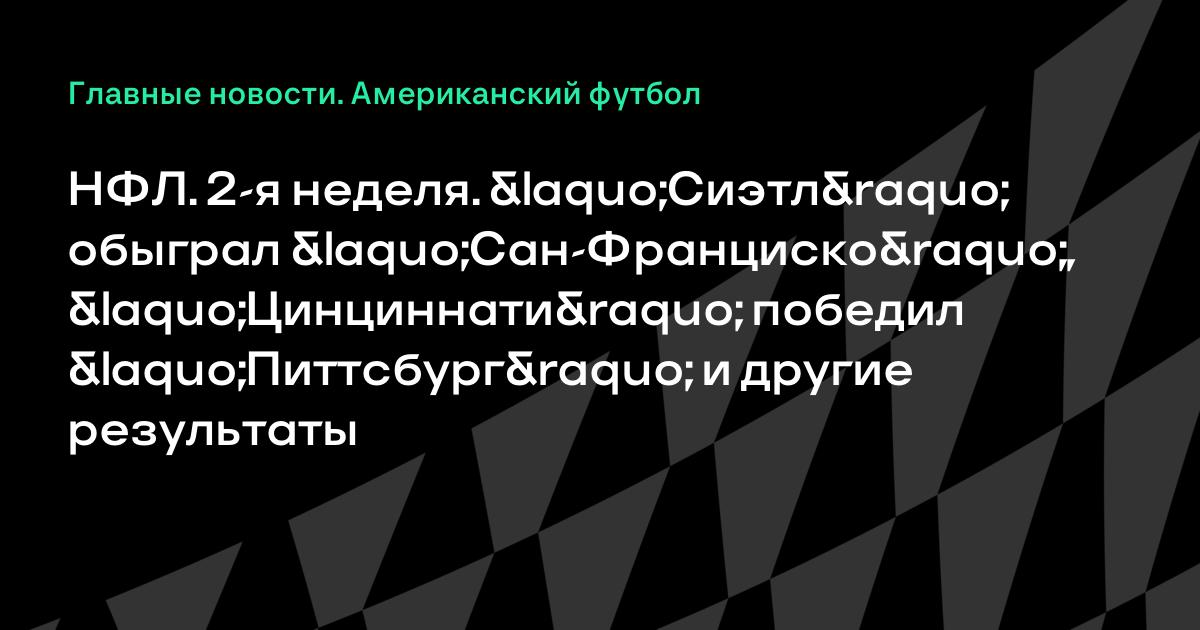 НФЛ. 2-я неделя. «Сиэтл» обыграл «Сан-Франциско», «Цинциннати» победил «Питтсбург» и другие результаты