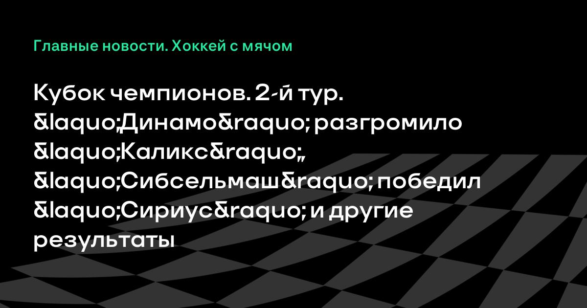 В шведском Эдсбюне продолжается розыгрыш Кубка чемпионов по хоккею с мячом. Во втором туре московское «Динамо» разгромило шведский «Каликс» (11:1), новосибирский «Сибсельмаш» победил другой шведский клуб – «Сириус» (6:4), а «Кузбасс» уступил «Ветланде» (3:4).