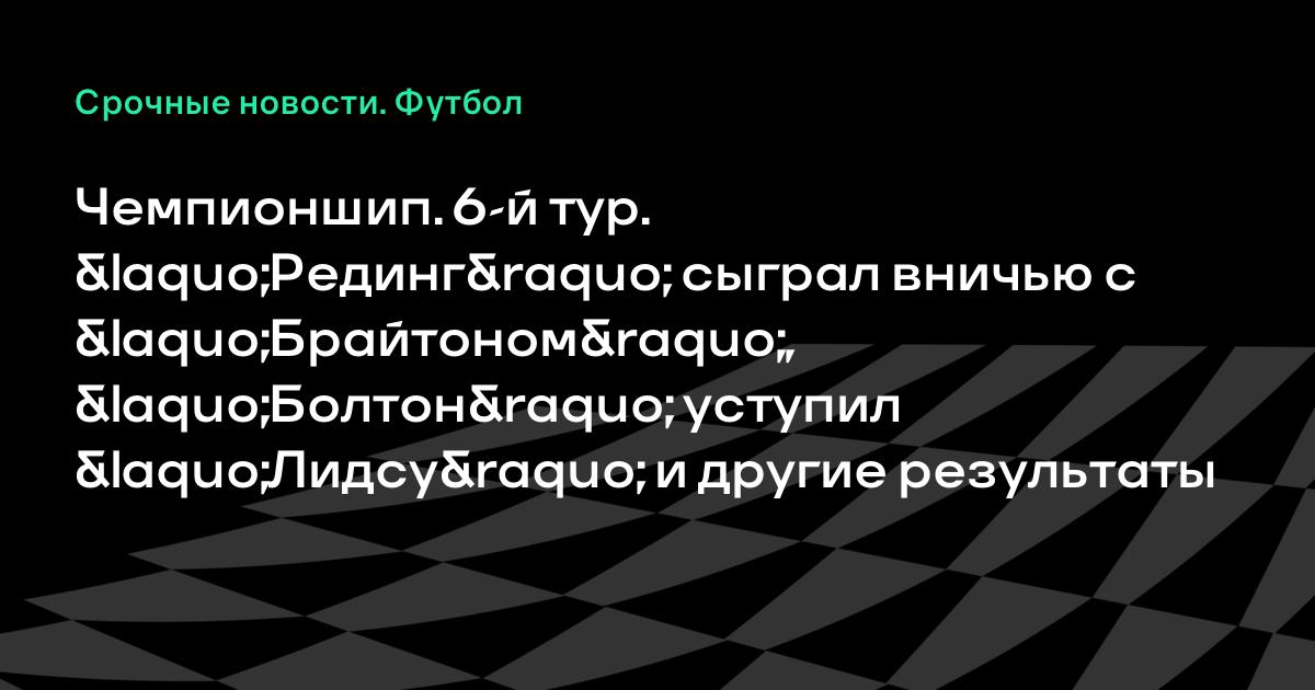 Чемпионшип. 6-й тур. «Рединг» сыграл вничью с «Брайтоном», «Болтон» уступил «Лидсу» и другие результаты
