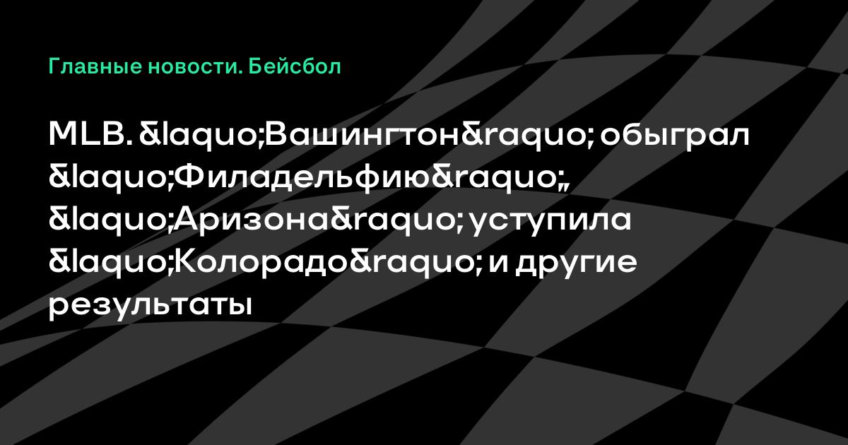 MLB. «Вашингтон» обыграл «Филадельфию», «Аризона» уступила «Колорадо» и другие результаты
