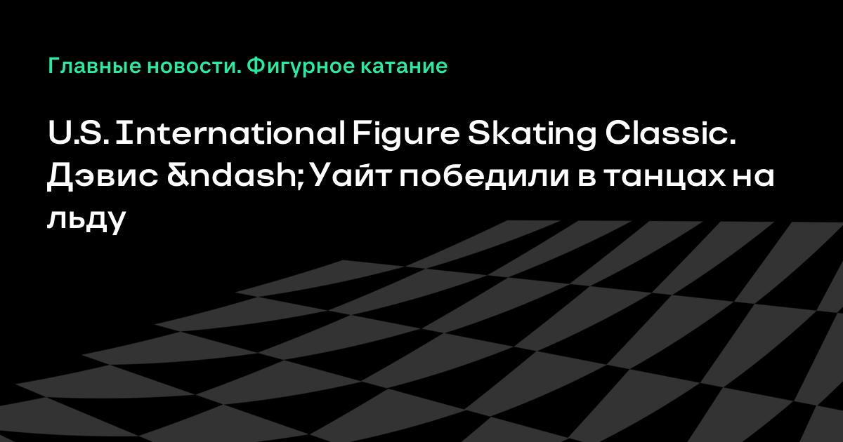 Американская танцевальная пара Мэрил Дэвис – Чарли Уайт победила на турнире U.S. International Figure Skating Classic, который завершился в Солт-Лейк-Сити. В сумме двукратные чемпионы мира набрали 183,69 балла.