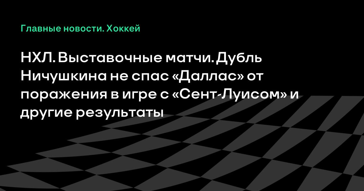 НХЛ. Выставочные матчи. Дубль Ничушкина не спас «Даллас» от поражения в игре с «Сент-Луисом» и другие результаты