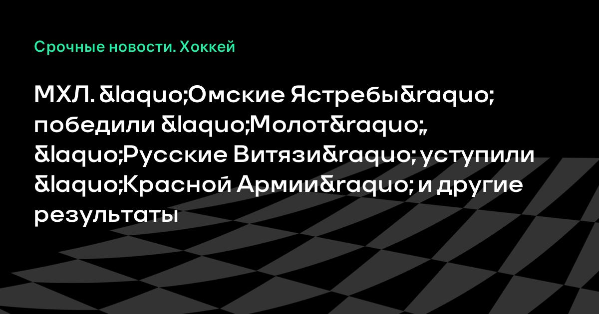 В чемпионате МХЛ «Омские Ястребы» на выезде нанесли поражение «Молоту» (5:4 ОТ), «Русские Витязи» были обыграны «Красной Армией» (2:5).
