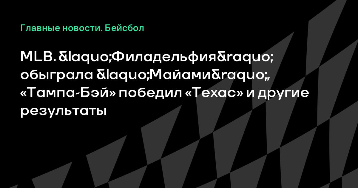 MLB. «Филадельфия» обыграла «Майами», «Тампа-Бэй» победил «Техас» и другие результаты
