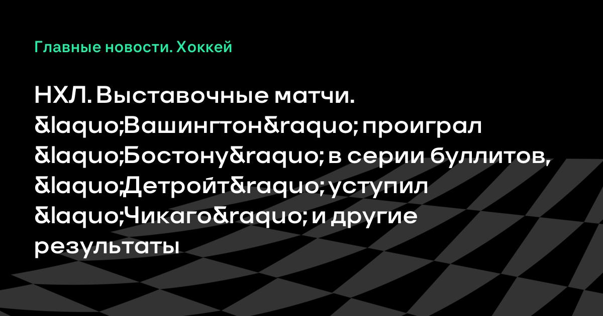НХЛ. Выставочные матчи. «Вашингтон» проиграл «Бостону» в серии буллитов, «Детройт» уступил «Чикаго» и другие результаты