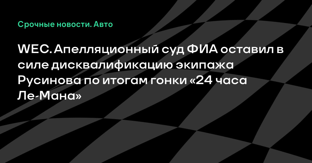 WEC. Апелляционный суд ФИА оставил в силе дисквалификацию экипажа Русинова по итогам гонки «24 часа Ле-Мана»