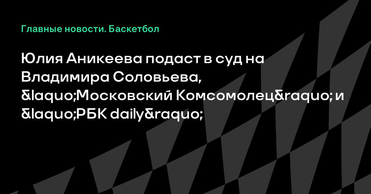 Президент РФБ Юлия Аникеева намерена подать в суд на телевизионного и радиоведущего Владимира Соловьева, а также издания «Московский Комсомолец» и «РБК daily» иск о защите чести и достоинства, сообщает «Р-Спорт».
