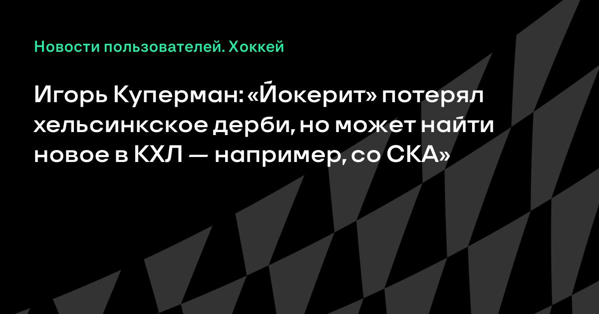 Игорь Куперман: «Йокерит» потерял хельсинкское дерби, но может найти новое в КХЛ — например, со СКА»