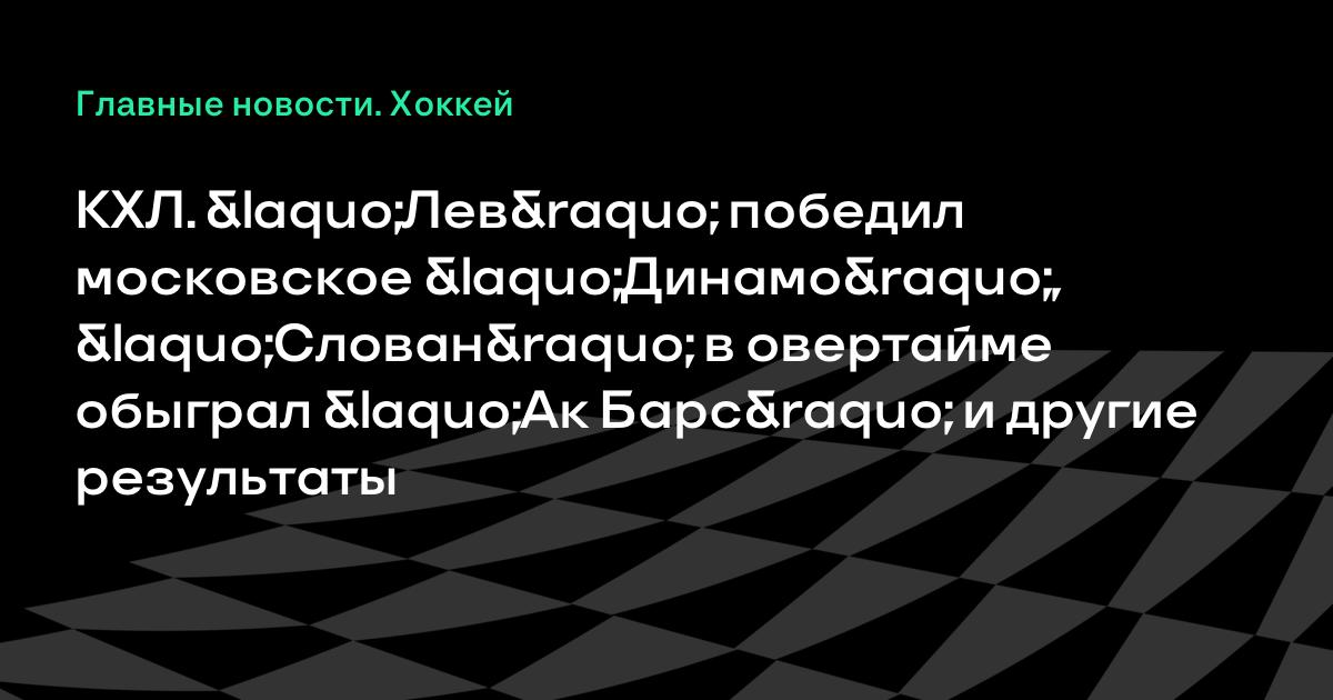 КХЛ. «Лев» победил московское «Динамо», «Слован» в овертайме обыграл «Ак Барс» и другие результаты
