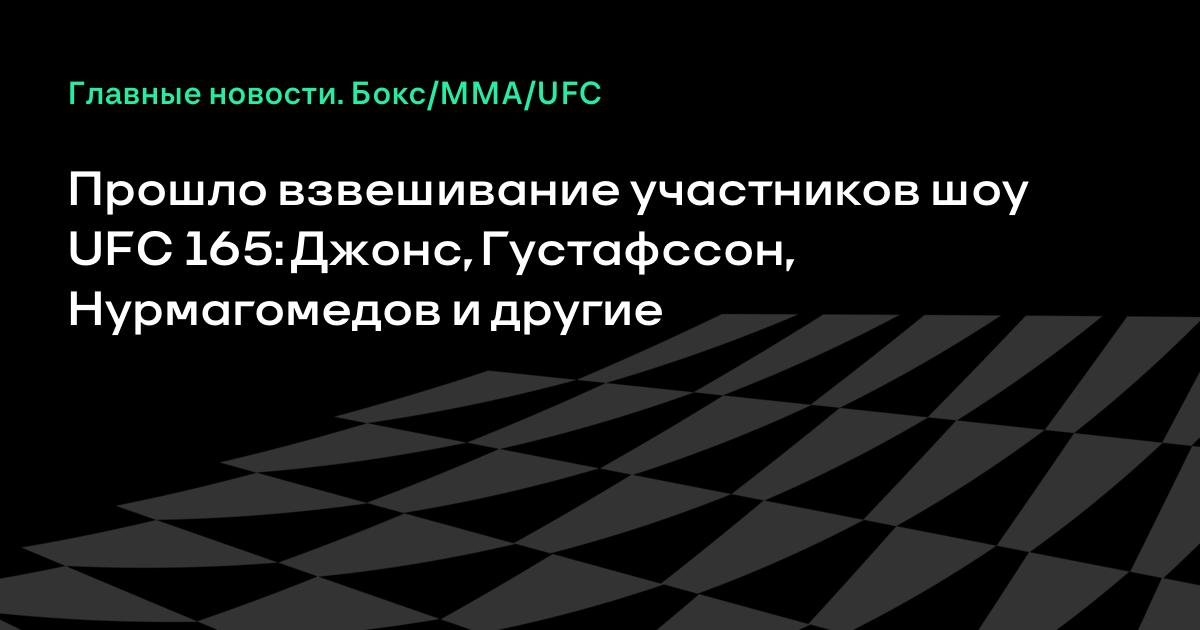 В Торонто (Канада) прошло взвешивание участников шоу UFC 165, главным событием которого станет бой между чемпионом организации в полутяжелом весе Джоном Джонсом и претендентом Александром Густафссоном.
