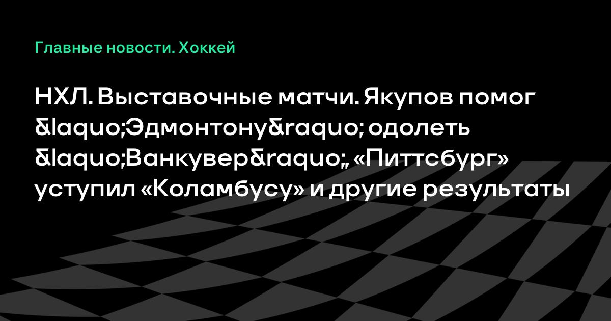 НХЛ. Выставочные матчи. Якупов помог «Эдмонтону» одолеть «Ванкувер», «Питтсбург» уступил «Коламбусу» и другие результаты