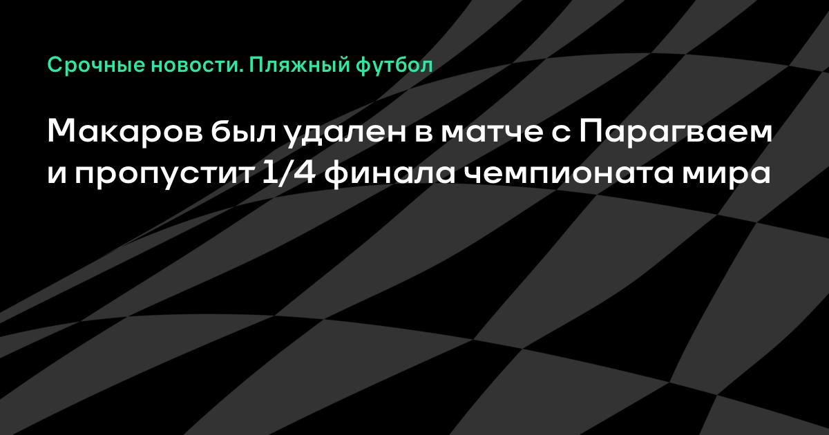 Защитник сборной России по пляжному футболу Алексей Макаров был удален за 8 секунд до конца матча с Парагваем и теперь пропустит четвертьфинал, который состоится 26 сентября.
