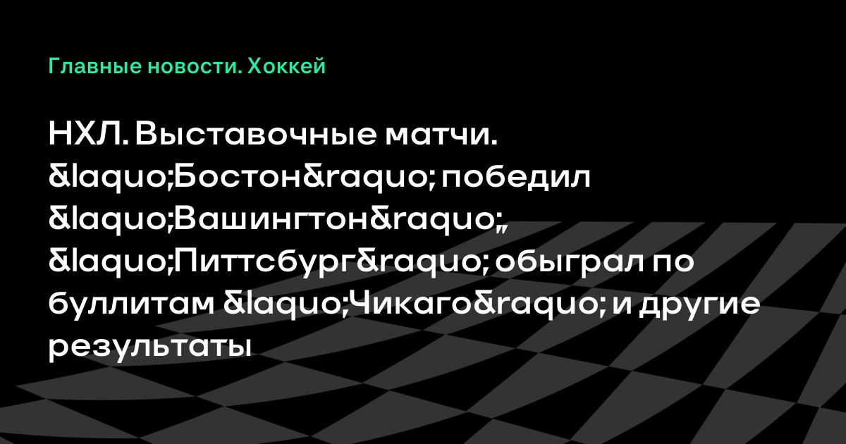 НХЛ. Выставочные матчи. «Бостон» победил «Вашингтон», «Питтсбург» обыграл по буллитам «Чикаго» и другие результаты