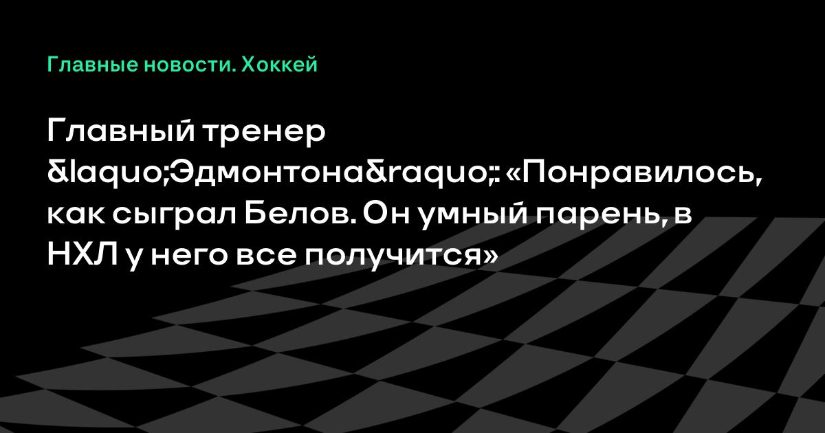 Главный тренер «Эдмонтона»: «Понравилось, как сыграл Белов. Он умный парень, в НХЛ у него все получится»