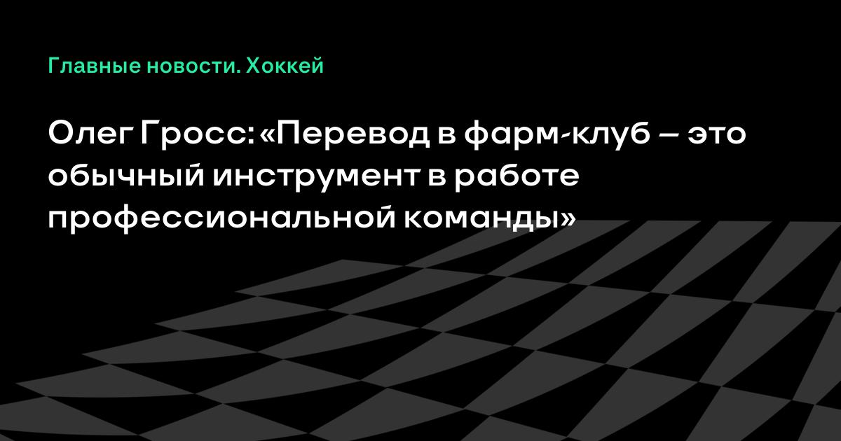 Олег Гросс: «Перевод в фарм-клуб – это обычный инструмент в работе профессиональной команды»