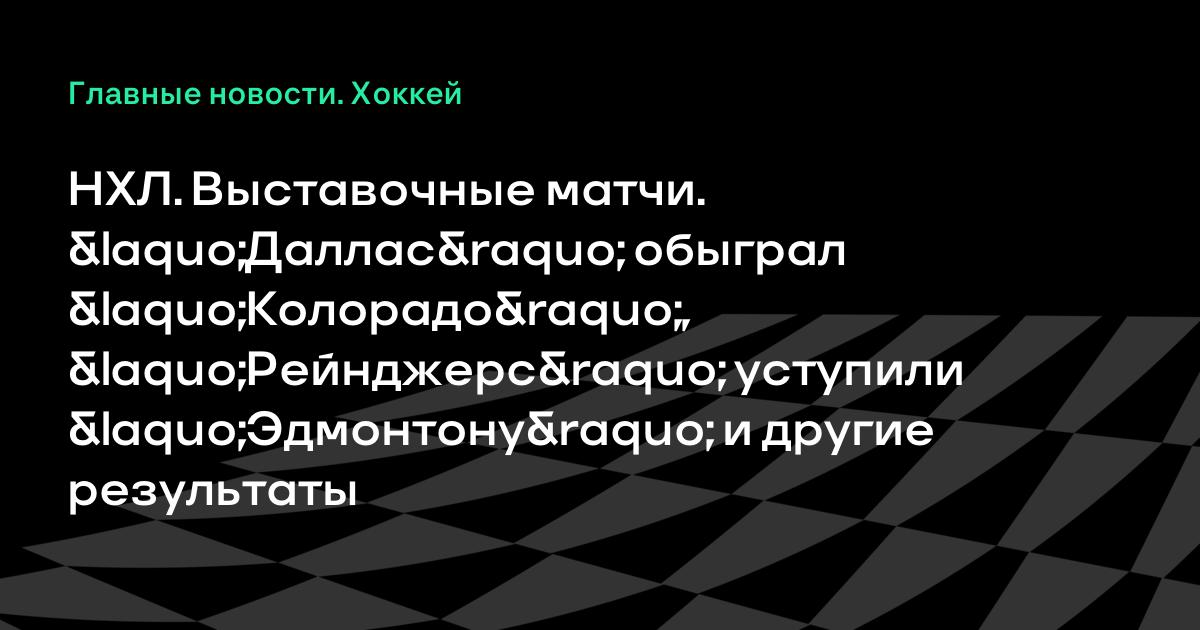 НХЛ. Выставочные матчи. «Даллас» обыграл «Колорадо», «Рейнджерс» уступили «Эдмонтону» и другие результаты