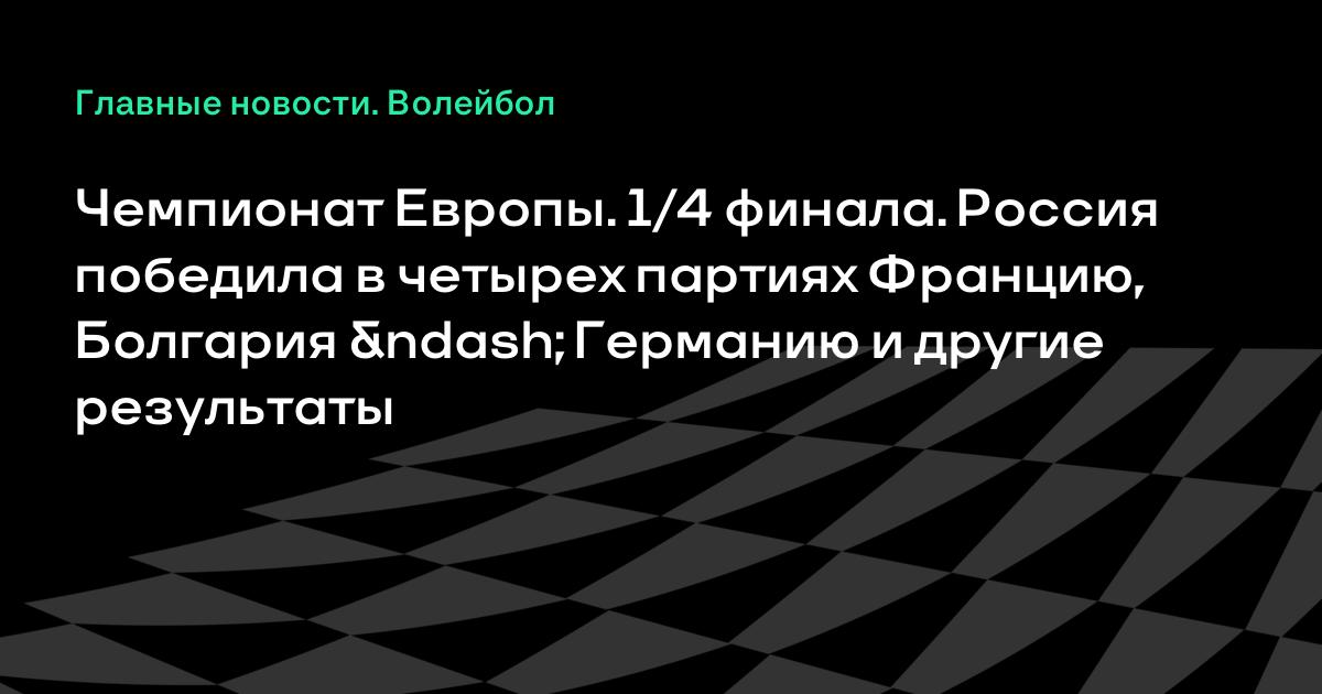 Чемпионат Европы. 1/4 финала. Россия победила в четырех партиях Францию, Болгария – Германию и другие результаты