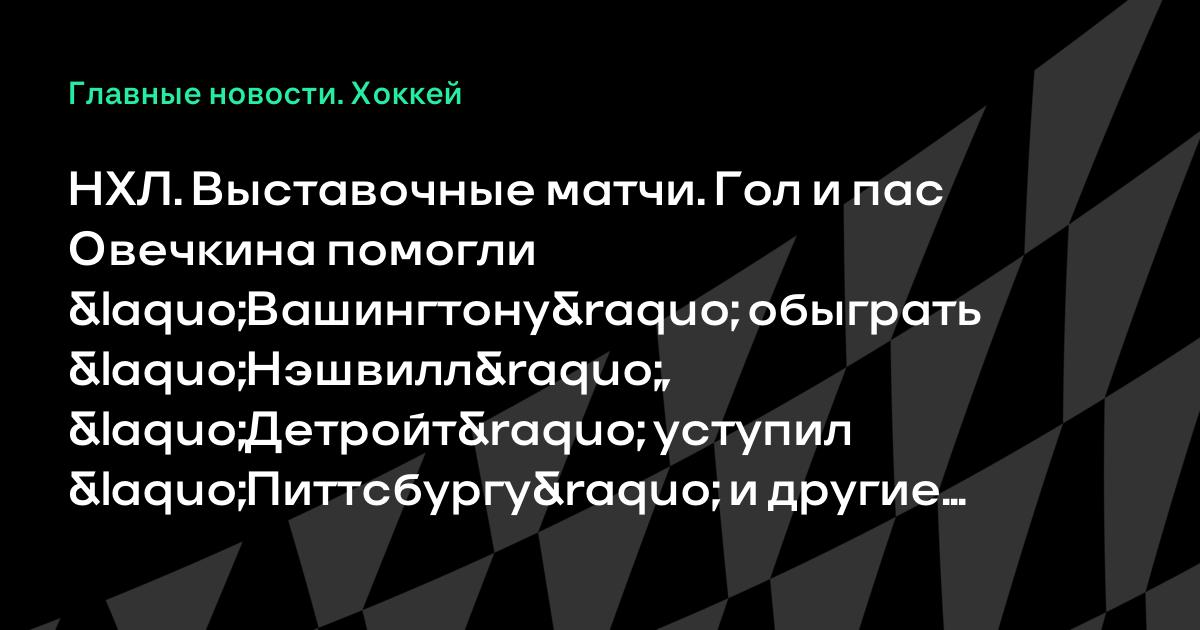 НХЛ. Выставочные матчи. Гол и пас Овечкина помогли «Вашингтону» обыграть «Нэшвилл», «Детройт» уступил «Питтсбургу» и другие результаты