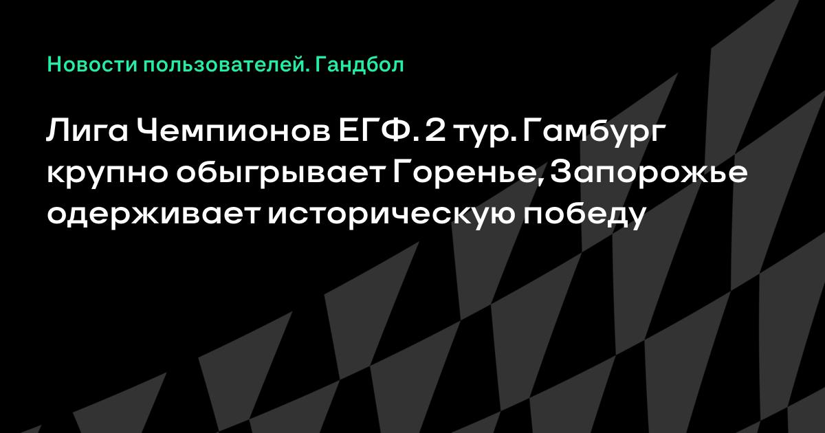 Лига Чемпионов ЕГФ. 2 тур. Гамбург крупно обыгрывает Горенье, Запорожье одерживает историческую победу